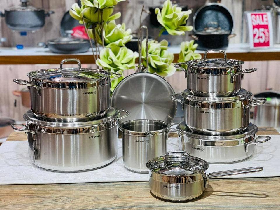 Korkmaz Alfa XL Stainless Steel Cookware Set 14 PCS ,, MADE IN TURKEY ( ORIGINAL ) 🇹🇷