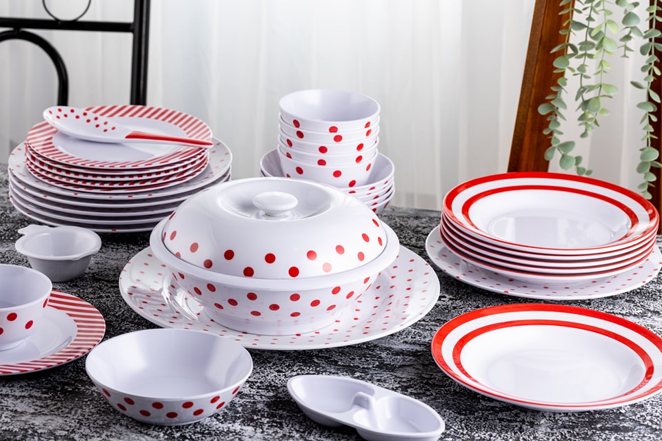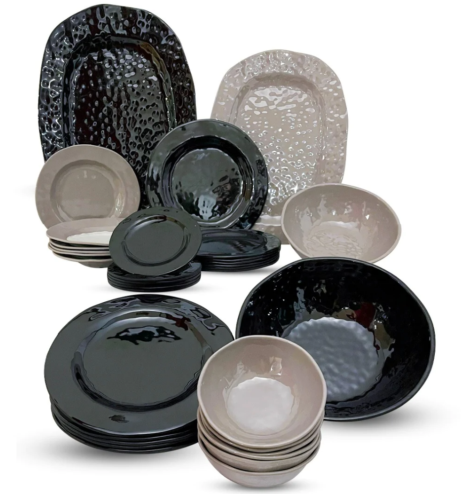 طقم عشاء ميلامين الشريف 38 قطعة - تصميم مدور