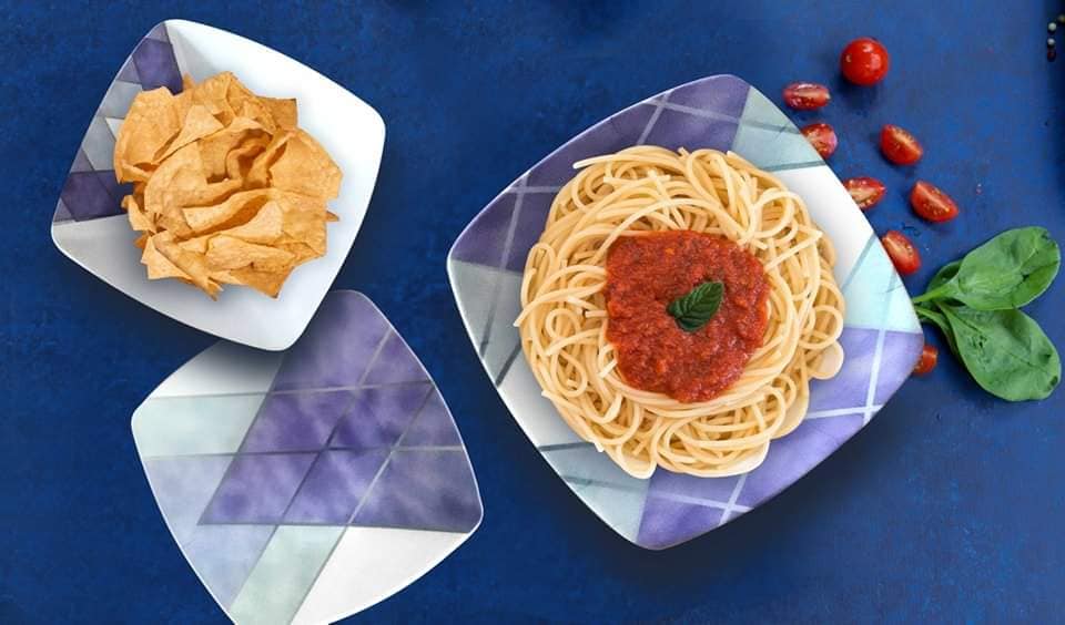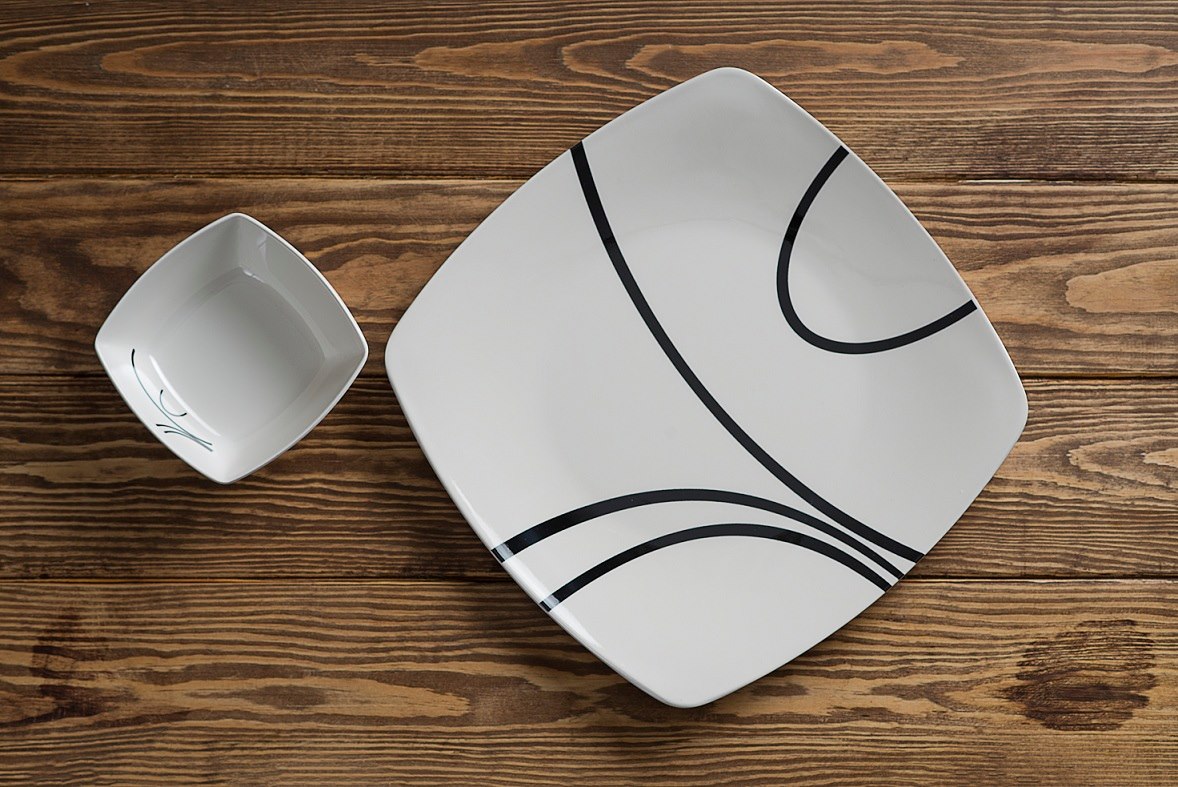 تصميم مربع فاخر: يتميز بزوايا انسيابية تضفي طابعاً عصرياً ومختلفاً عن الأطباق التقليدية المدورة.
