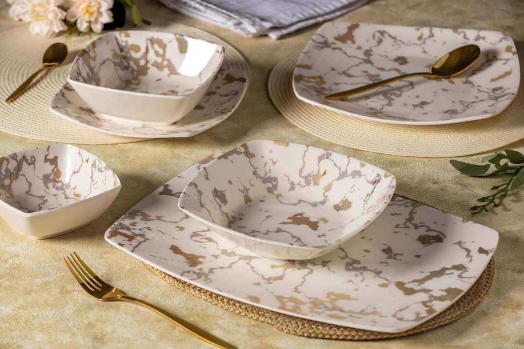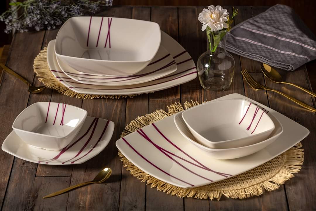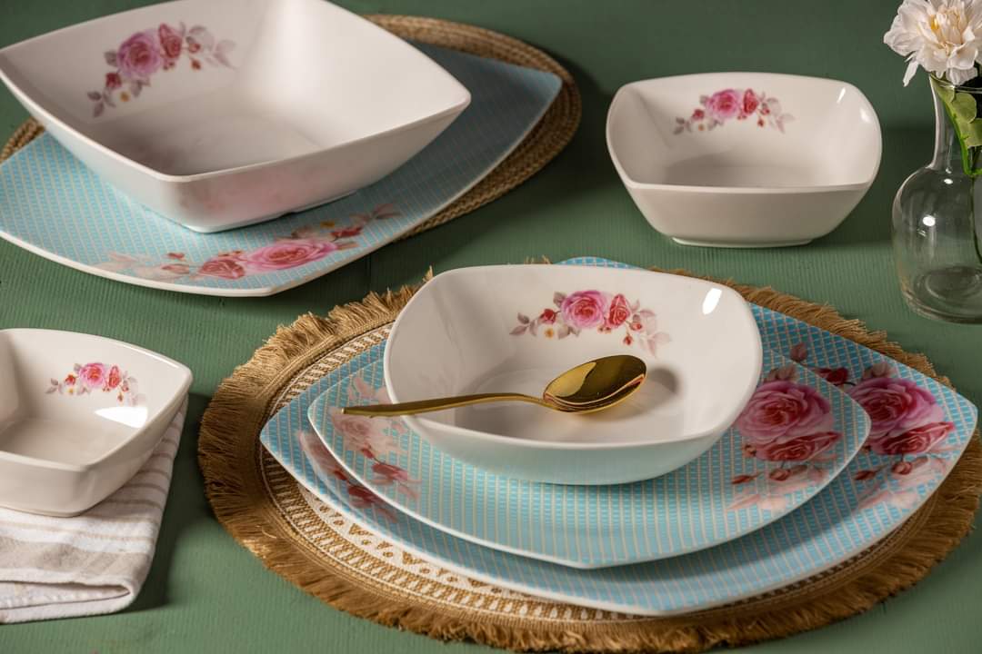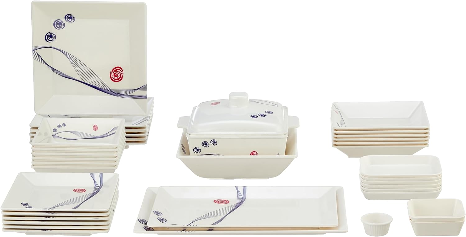 طقم ميلامين الشريف المربع 38 قطعة: حيث تلتقي الأصالة بالتصميم العصري"