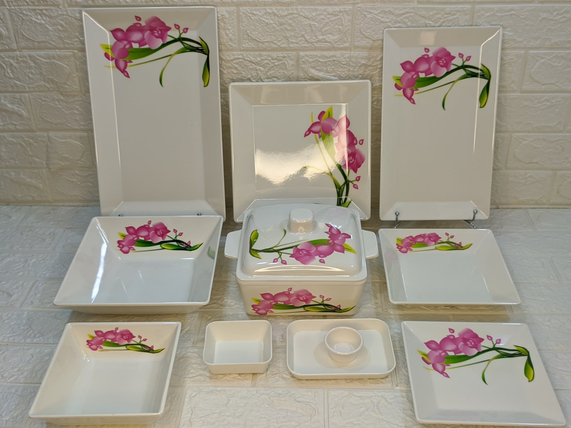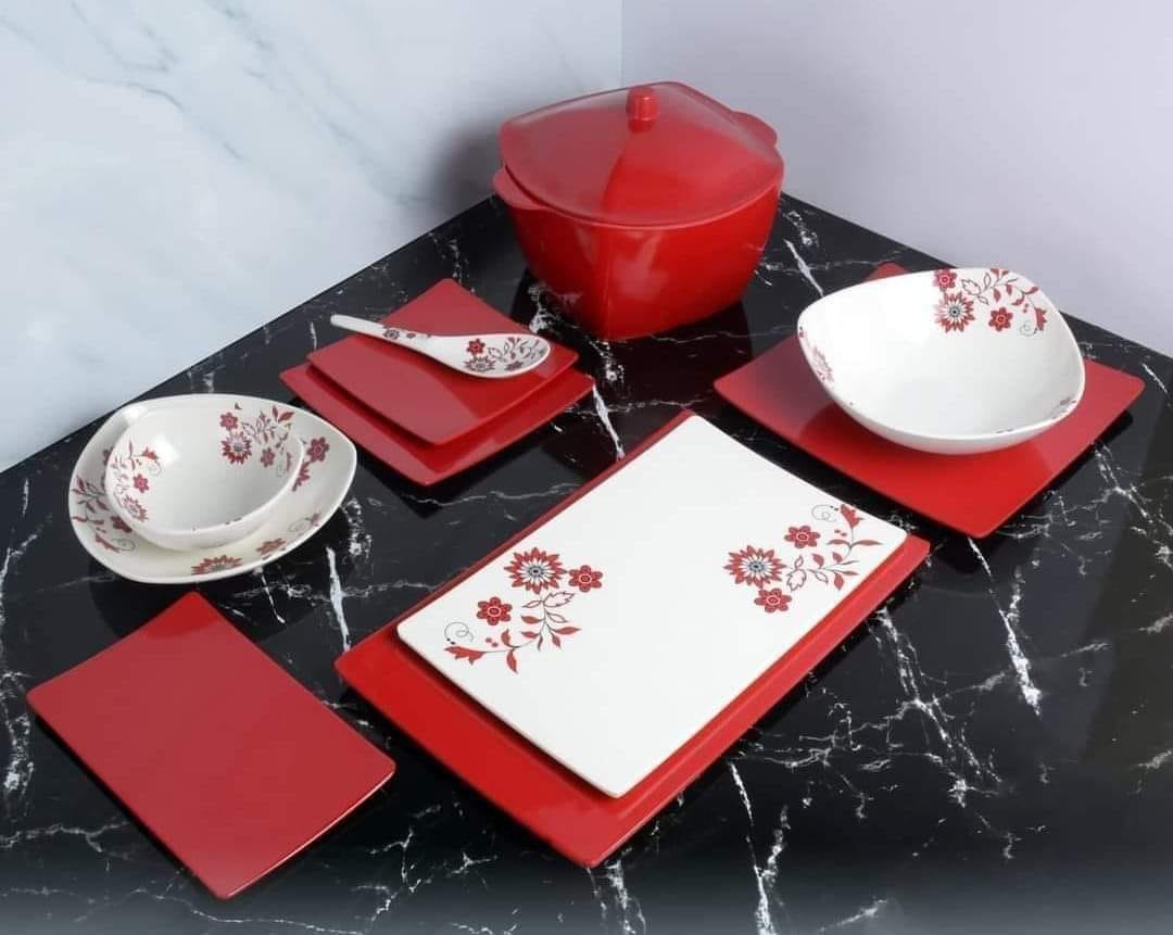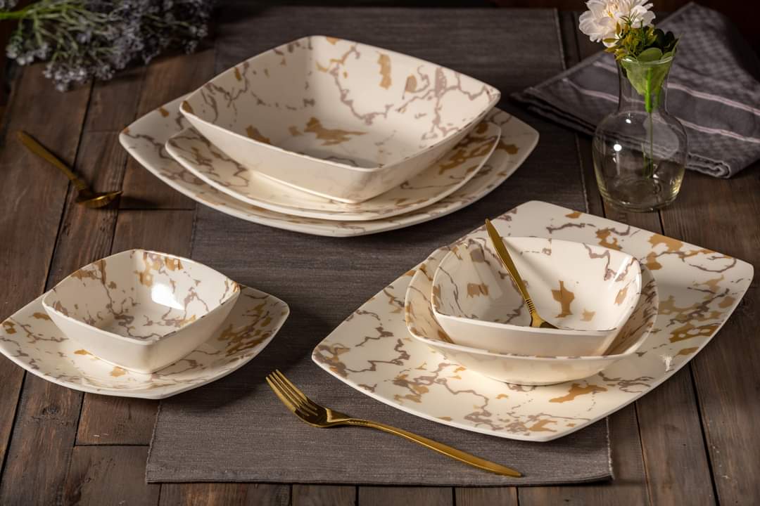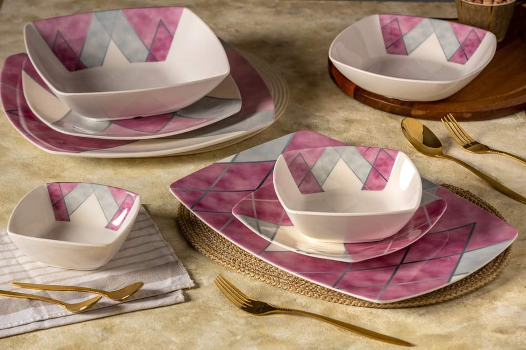 طقم ميلامين الشريف المربع 38 قطعة: حيث تلتقي الأصالة بالتصميم العصري"