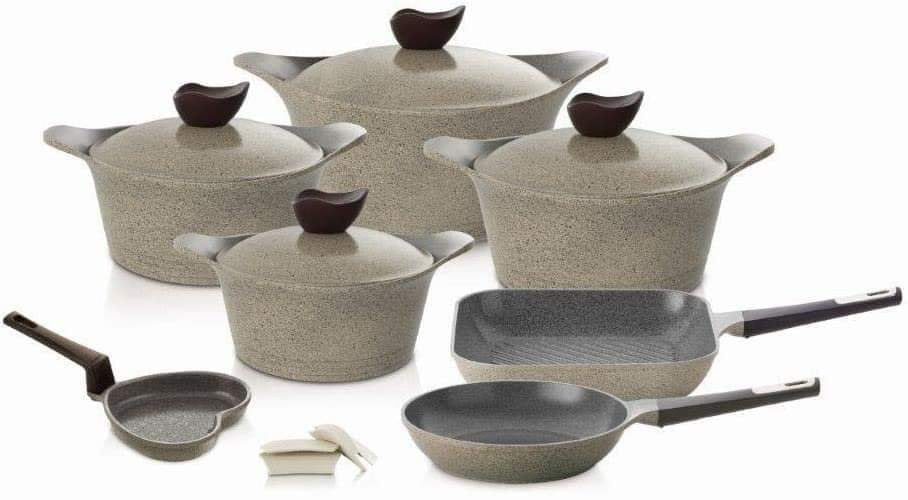 سعة عائلية: الطقم يحتوي على 12 قطعة متكاملة تغطي كل احتياجاتك من الحلل والمقالي بمقاسات متنوعة.