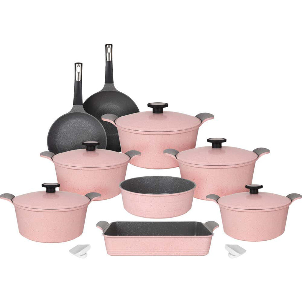 طقم جرانيت نيوفلام كوري أصلي 14 قطعة - متوفر بـ 4 ألوان (روز، وورم، جراي، أسود)