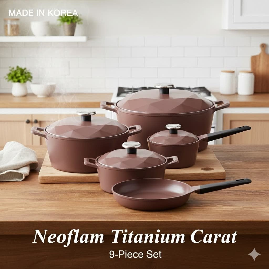 طقم حلل نيوفلام تيتانيوم 8 قطع كوري أصلي - صلابة فائقة | Neoflam Titanium
