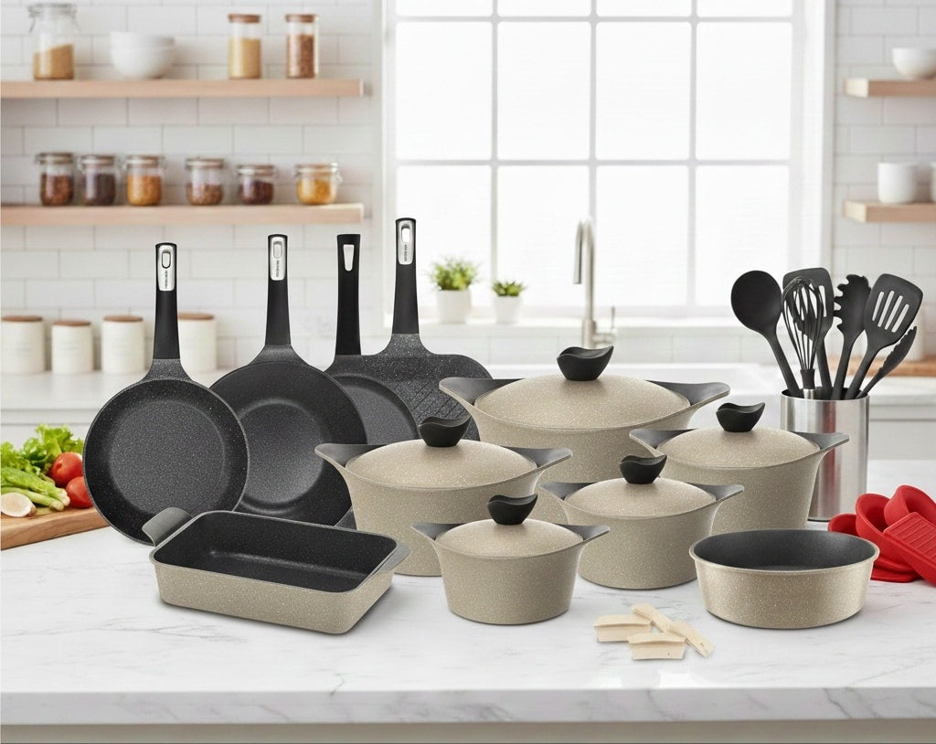 طقم نيوفلام وورم (Neoflam Warm) الـ 26 قطعة: المطبخ المتكامل في كرتونة واحدة"
